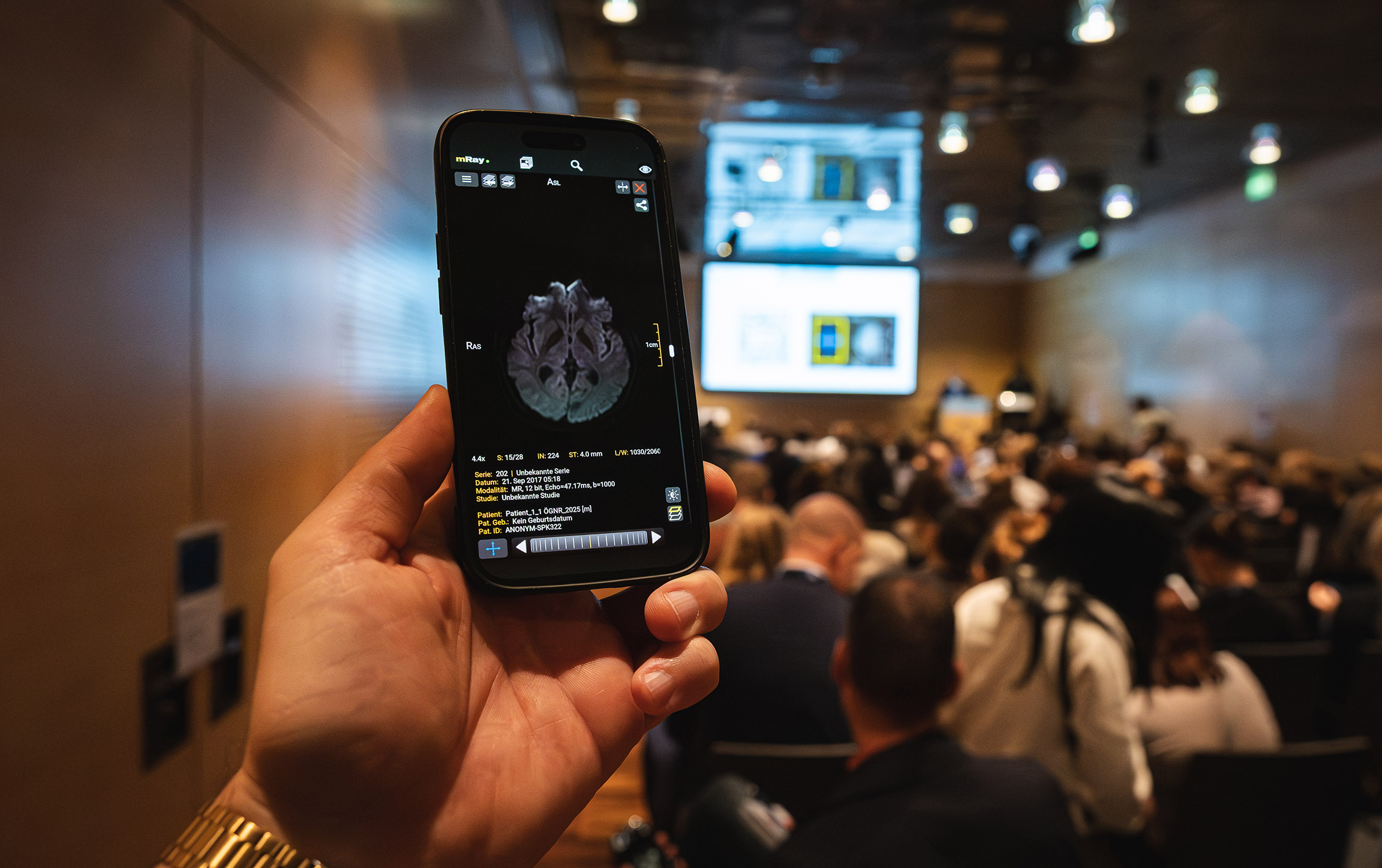 Mit mRay Lecture wird Ihr Vortrag zum interaktiven Erlebnis. Teilnehmende können per QR-Code live auf Ihre anonymisierten Fälle zugreifen, diese eigenständig betrachten und mit Werkzeugen wie Zoom, Messung oder Annotation arbeiten – direkt auf dem eigenen Smartphone oder Tablet.