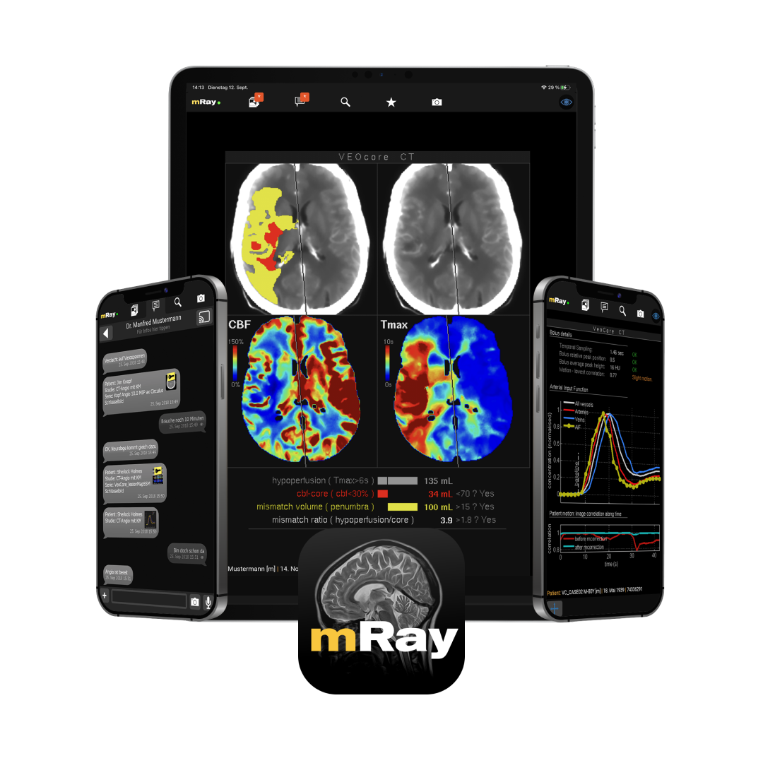 mRay-VEOcore ist eine KI-gestützte Software zur automatisierten Perfusionsanalyse von CT- und MRT-Bildern des Kopfes. Innerhalb weniger Minuten liefert sie hochwertige Visualisierungen der DEFUSE-3-Kriterien, um evidenzbasierte Entscheidungen in der akuten Schlaganfallversorgung zu unterstützen.